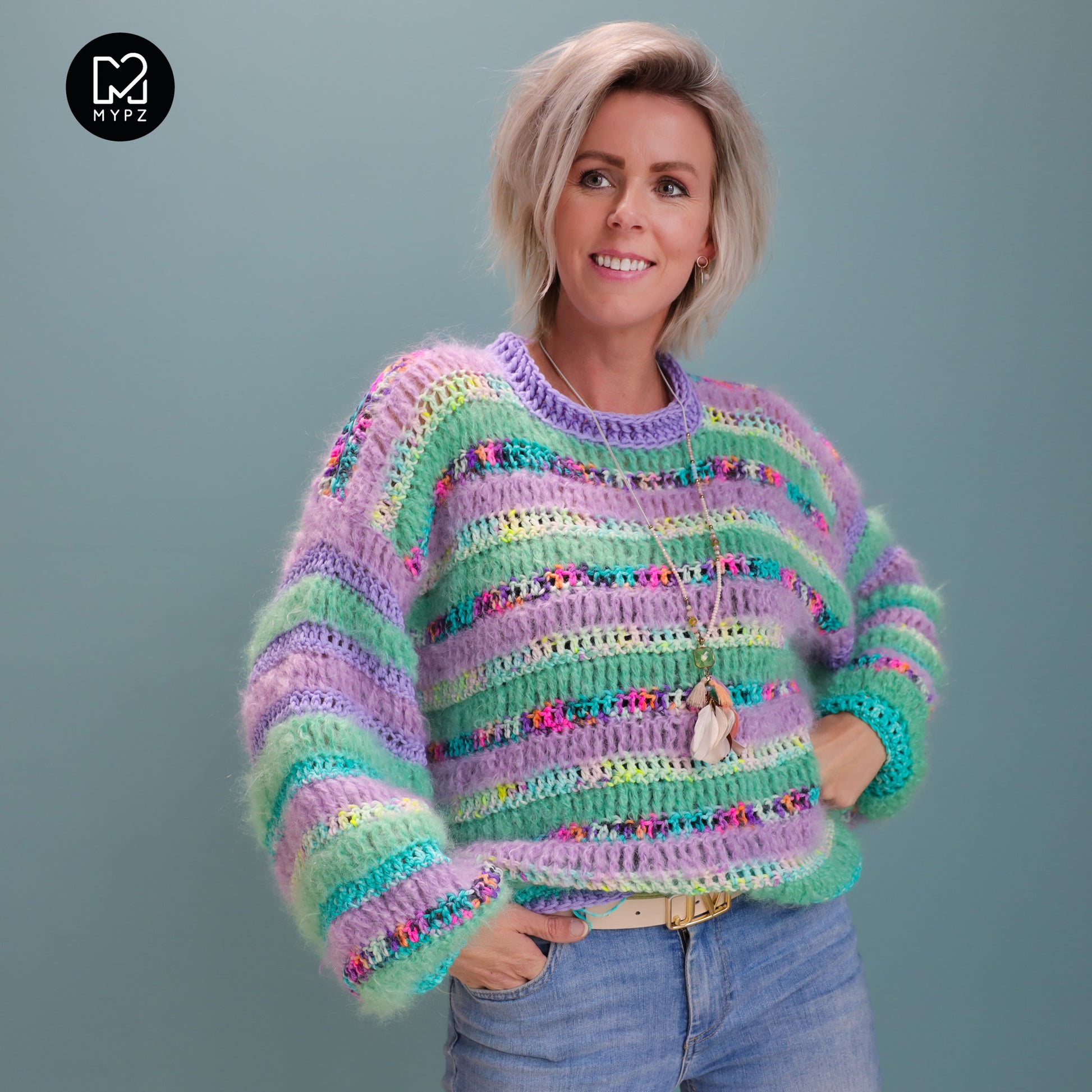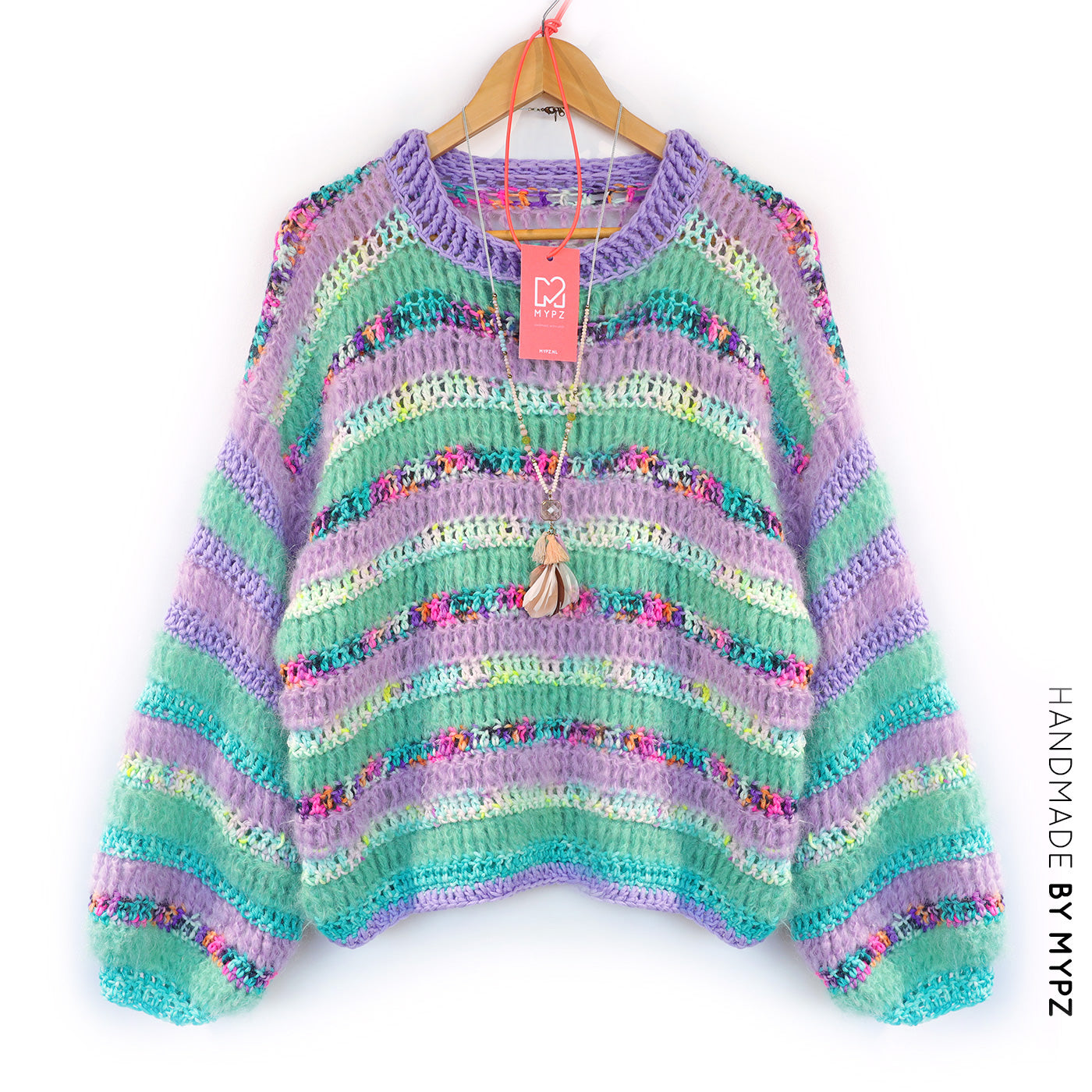 This is a handmade knit made by MYPZ in The Netherlands. Each cardigan or sweater is a unique piece and we take a lot of time and care to create these beautiful products. This sweater has a oversized fit