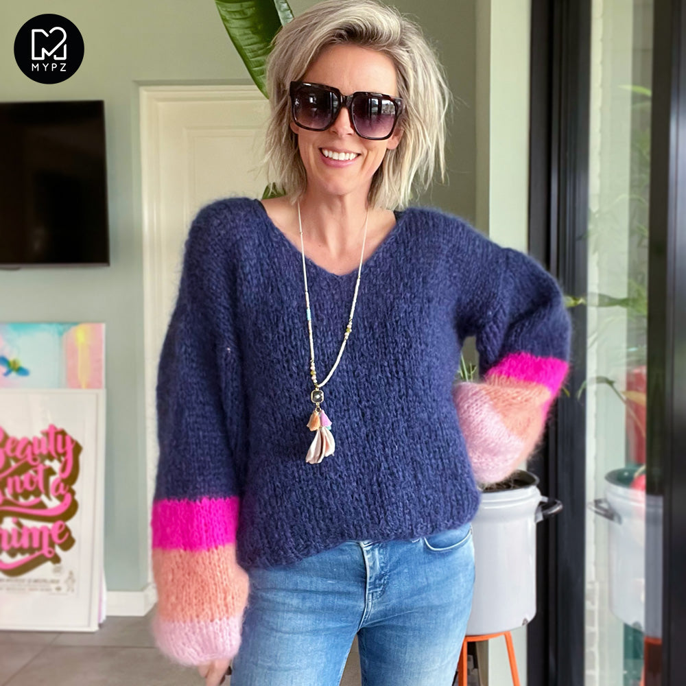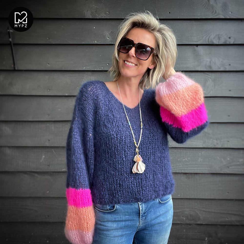 Knitting Kit – MYPZ Basic Light Mohair v-neck Pullover Sapphire no10 (ENG-NL)