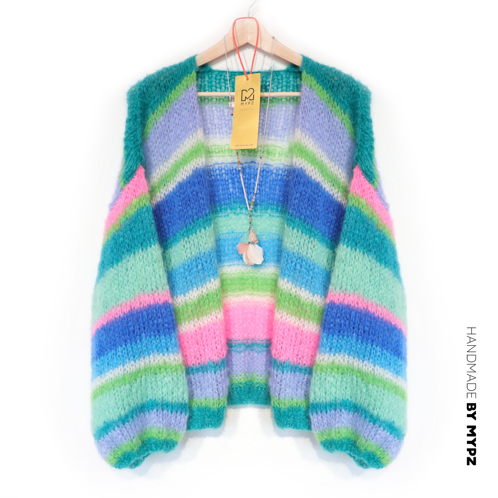 HANDMADE WITH LOVE BY MYPZ | This is a unique handmade luxury mohair cardigan. This beautiful cardigan is made of a high quality kidmohair and does not pill. It is very light, warm and comfortable. These brushed yarns may shed a little but after the first or two washes, this will subside.