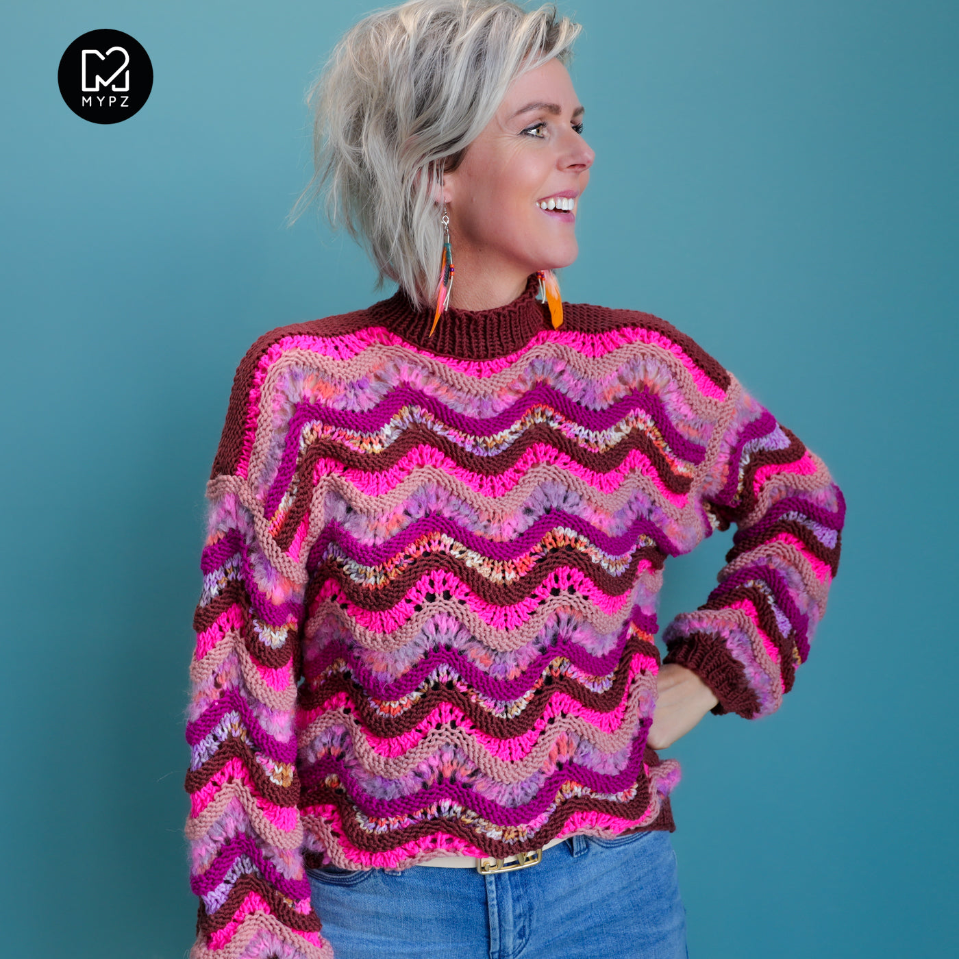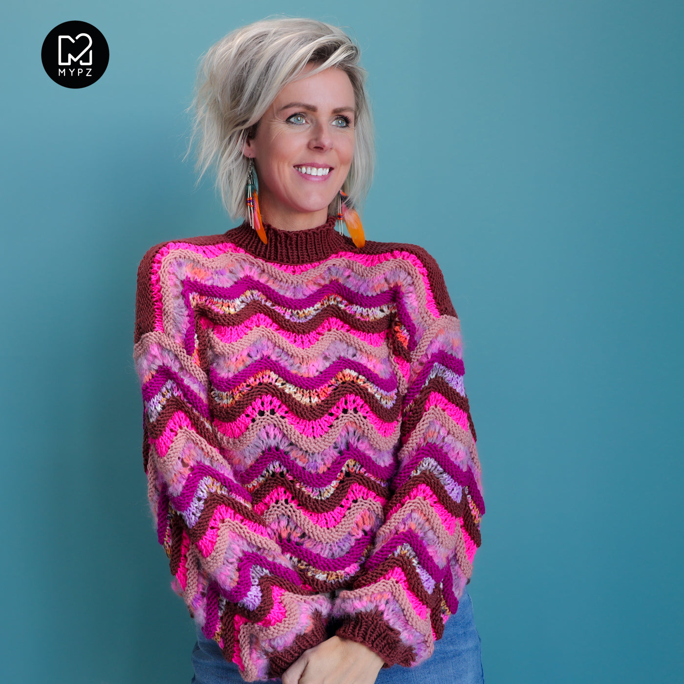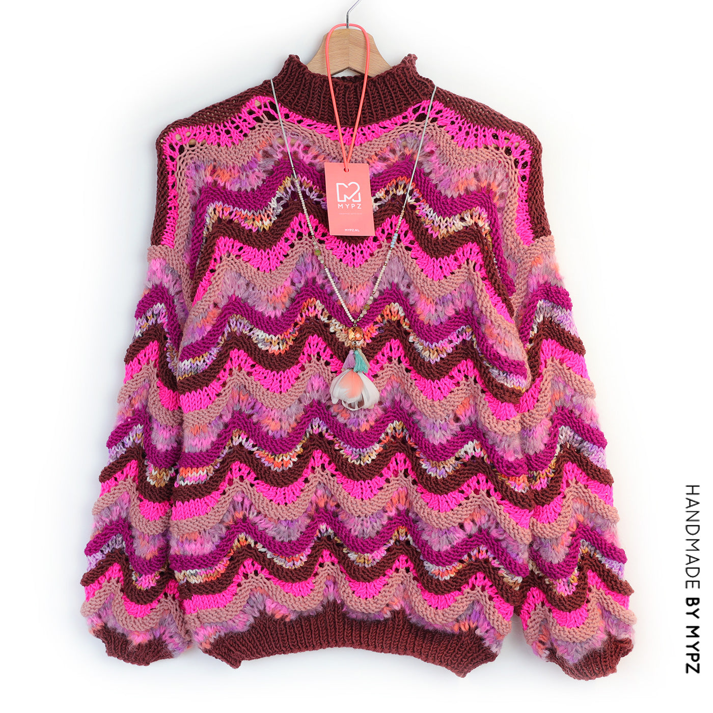 This is a handmade knit made by MYPZ in The Netherlands. Each cardigan or sweater is a unique piece and we take a lot of time and care to create these beautiful products. This sweater has a regular/slim fit. The stitch is very stretchy and will therefore easily stretch 10 cm.